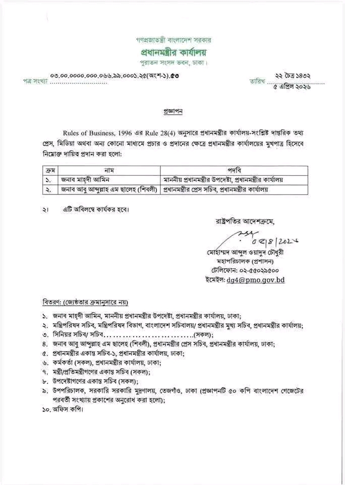 Two prominent closest associates of Prime Minister Tarique Rahman have been appointed the Spokesperson of the government.